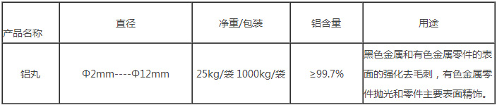 鋁丸又名鋁砂、鋁顆粒,主要應(yīng)用于鋁、鋅或薄壁工件的表面噴拋處理,也可與不銹鋼丸按一定比例混合使用,對工件表面具有明顯的增白效果。