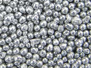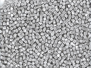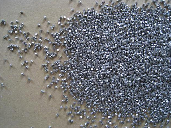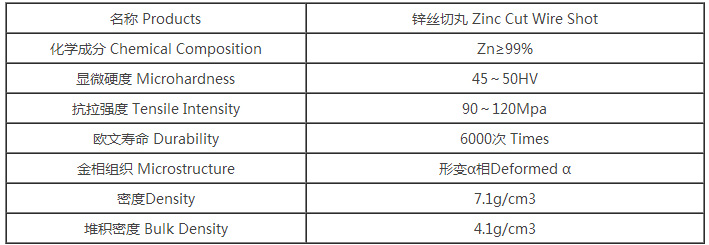 鋅丸:采用拉絲、裁切、磨圓等工藝精制而成,結(jié)構(gòu)緊致,顆粒均勻,外觀銀白光亮。鋅的比重較高,且硬度低,可以在不磨損產(chǎn)品表面的同時去除毛刺,廣泛應用于鋁制、鋅制壓鑄件等各種產(chǎn)品的表面噴拋處理。另外,因為與其他丸類相比,粉塵的著火點低,安全性好,并對工件表面有增白效果。